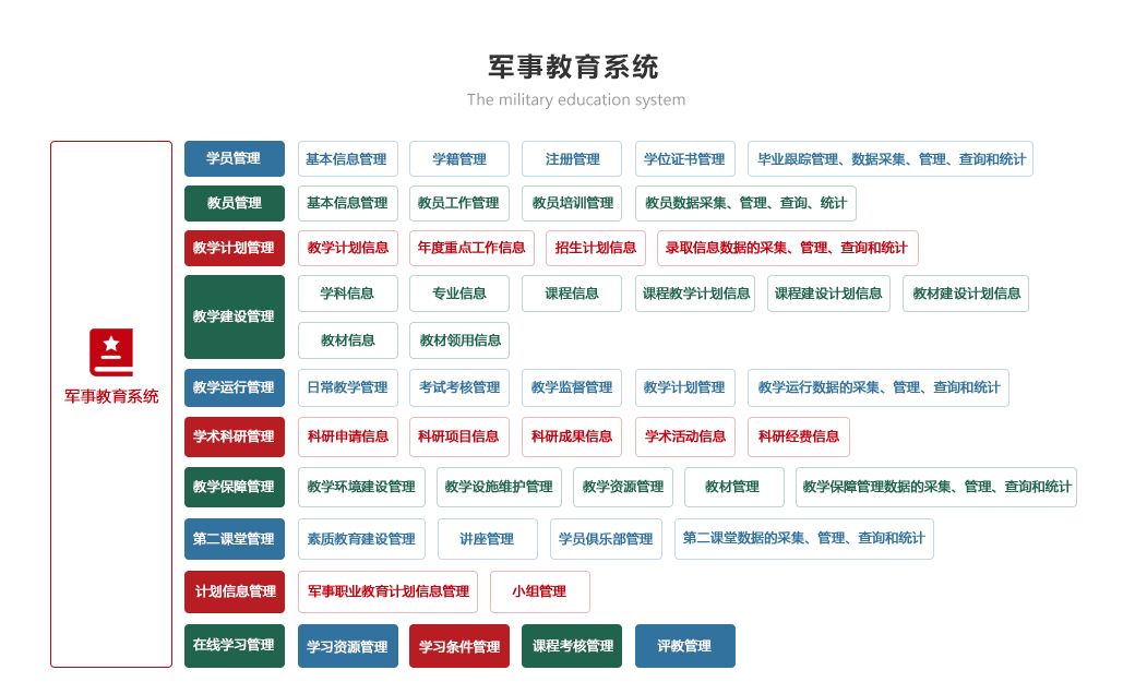 包括訓(xùn)練計(jì)劃、訓(xùn)練檢查、訓(xùn)練考核、訓(xùn)練檔案、訓(xùn)練資源模塊,實(shí)現(xiàn)對(duì)訓(xùn)練計(jì)劃制定情況自動(dòng)統(tǒng)計(jì)和智能分析、逐步解決訓(xùn)練時(shí)間、訓(xùn)練人員落實(shí)情況、實(shí)現(xiàn)智能報(bào)靶和體能訓(xùn)練監(jiān)測(cè)、實(shí)現(xiàn)網(wǎng)上模擬訓(xùn)練與考核的智能化、自動(dòng)化和便捷化,對(duì)訓(xùn)練資源科學(xué)管理,確保為軍事訓(xùn)練工作有力支撐。